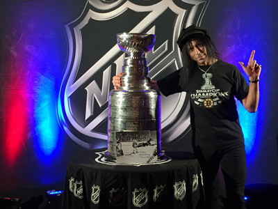 I have played hockey my entire life, and always wear Bruins gear when I play! |