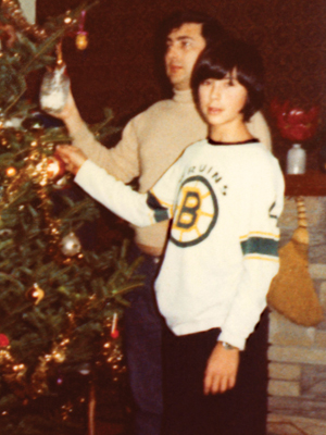 Wearing a Bruins / Bobby Orr long sleeve t shirt, aged 14 years old. That is my Dad behind me! |