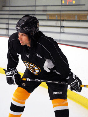 I have played hockey my entire life, and always wear Bruins gear when I play! |